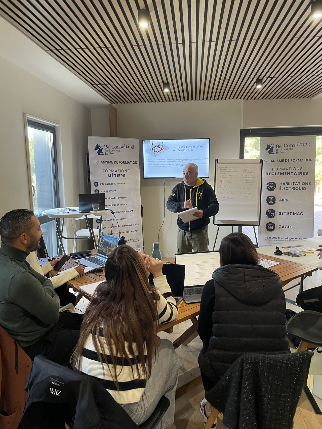 En parallèle des actions liées à la transition écologique, nous poursuivons les formations réglementaires, notamment sur les habilitations électriques. Ces formations se déroulent dans un cadre sécurisé, structuré et dynamique.